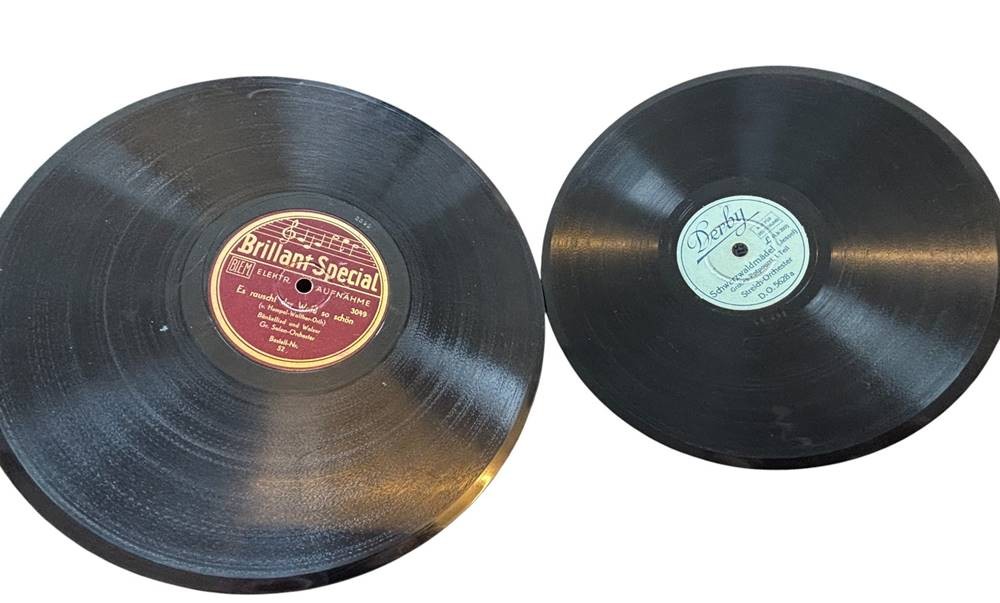 Grammophon mit Schrank, einigen Schellackplatten, Werk defekt