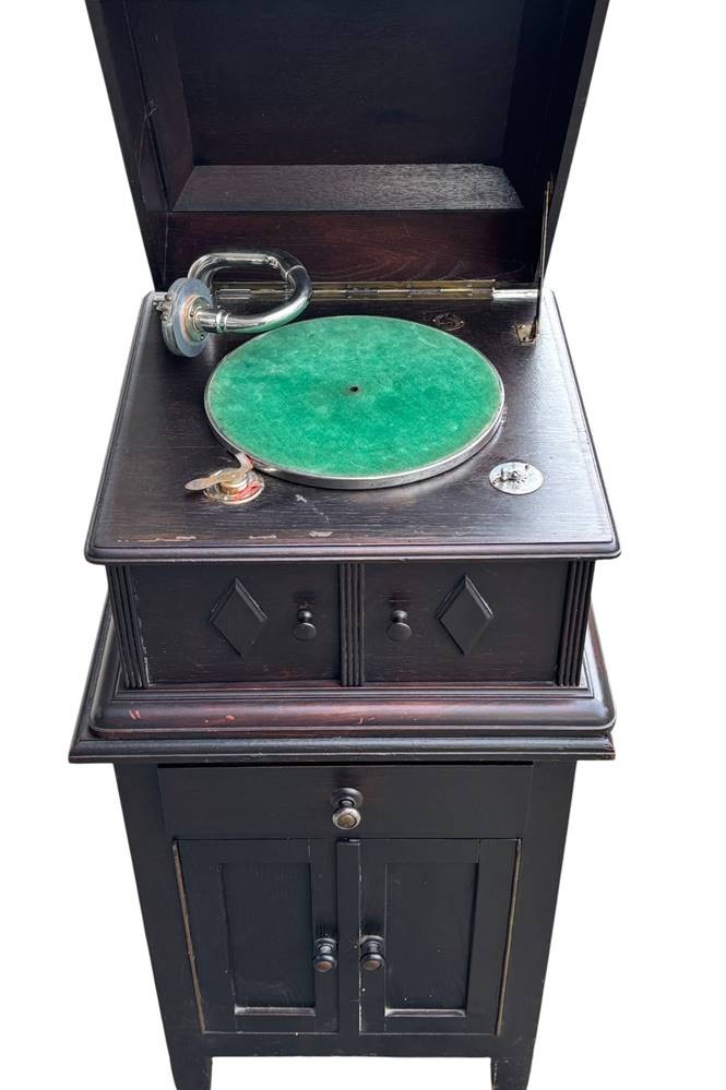 Grammophon mit Schrank, einigen Schellackplatten, Werk defekt [1]