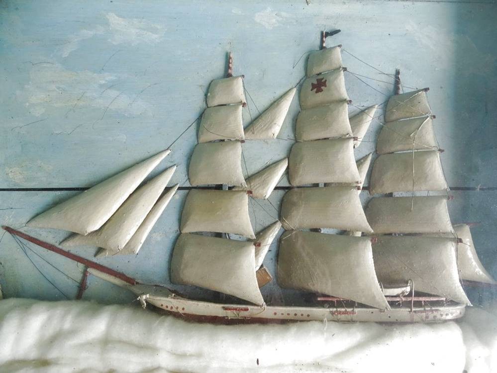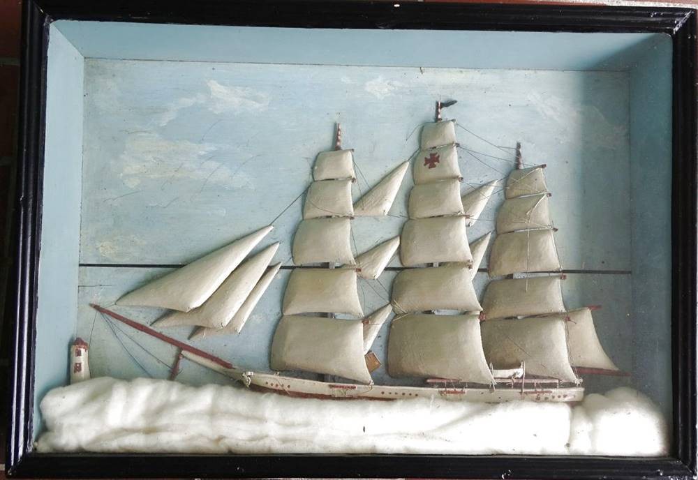 Halbmodell eines Segelschiffes in Wandvitrine, 43x62x11,5 cm, [1]