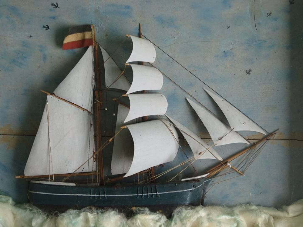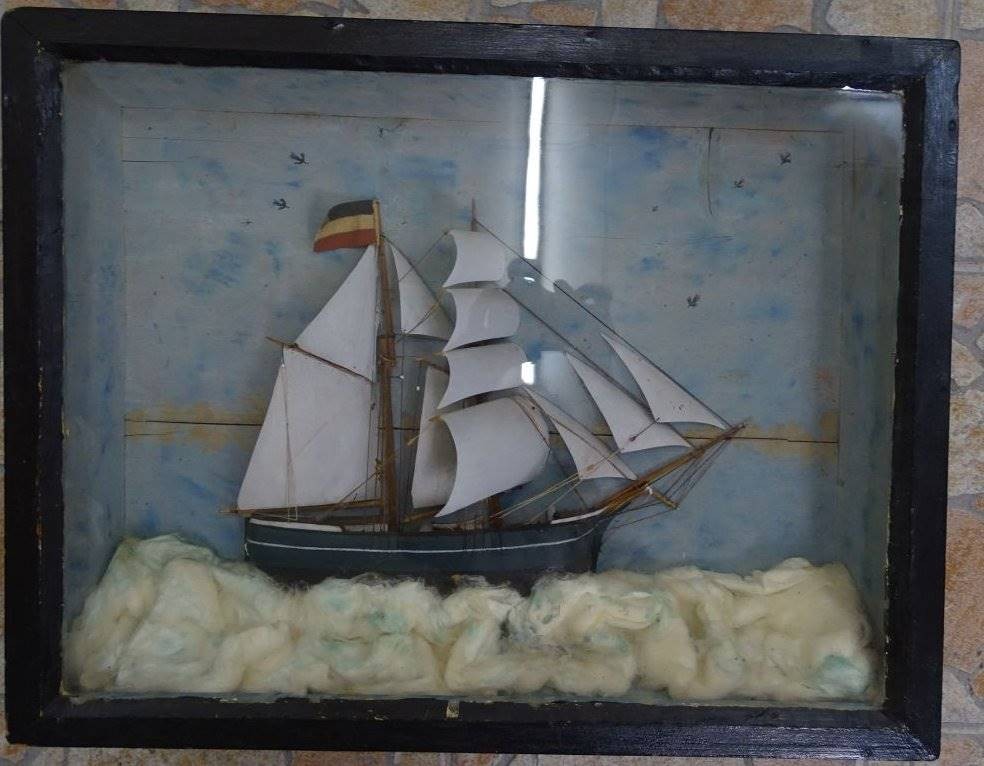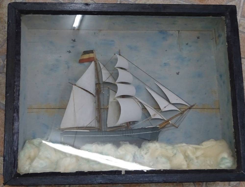 Halbmodell eines Segelschiffes in Wandvitrine, 44x58x10 cm [1]