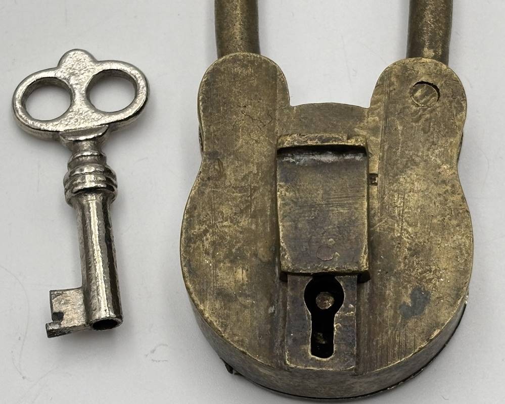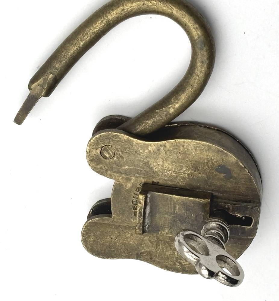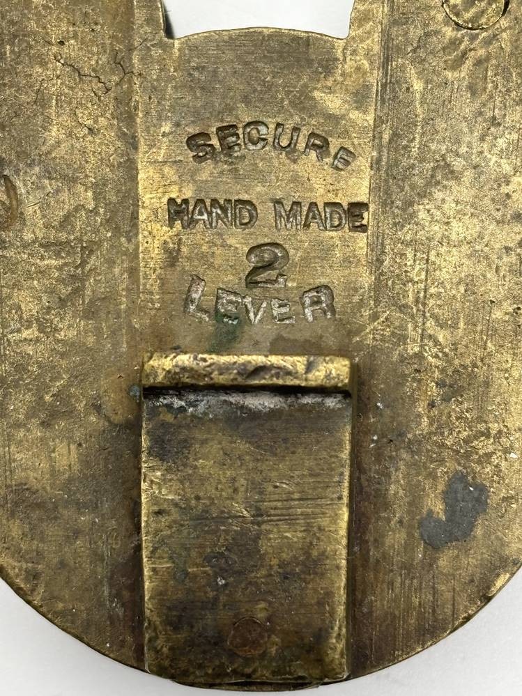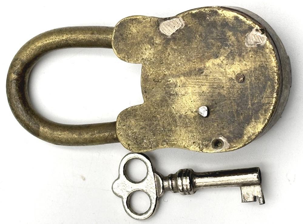 Handgearbeitetes Messing-Vorhängeschloss mit Schlüssel, 2 Lever (2 Heber), H-10,5 cm, Schloss leichtgängig [1]