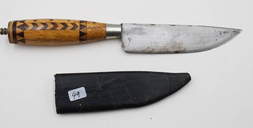 Jagdmesser nach antikem Vorbild, Holzgriff mit Intarsien, L-24cm