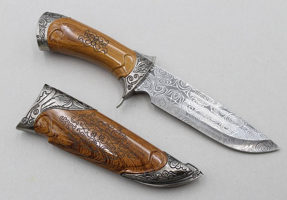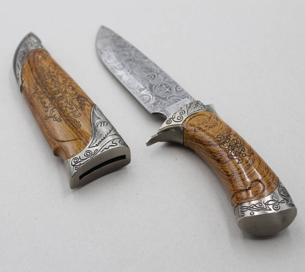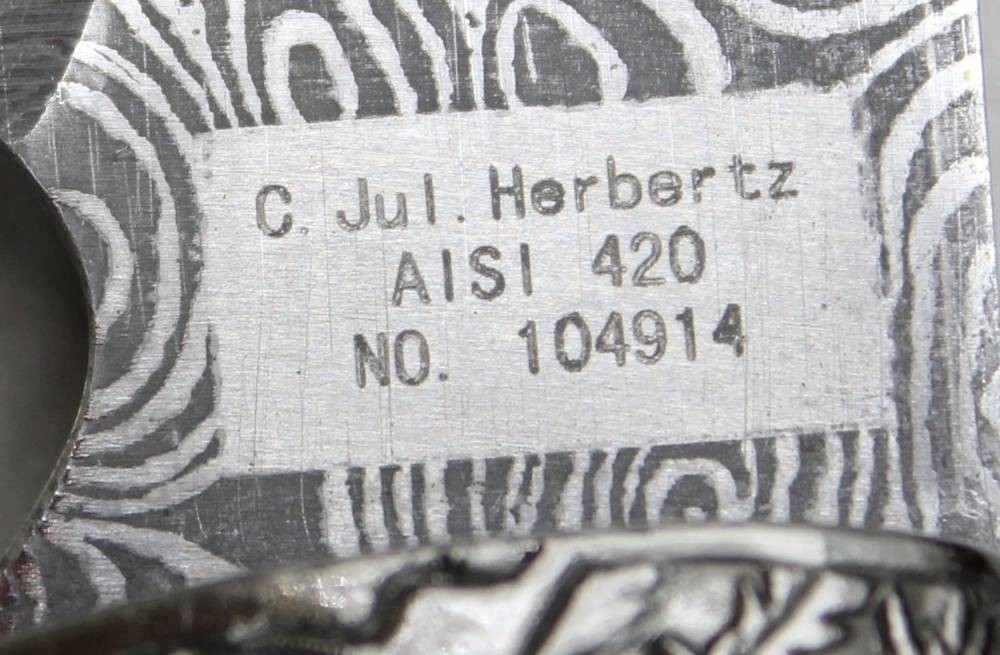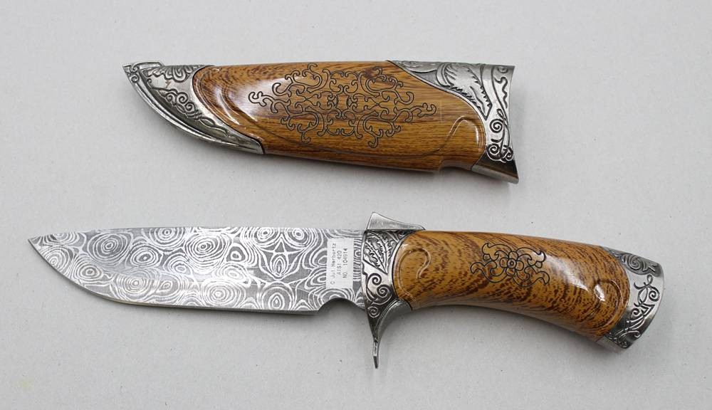 Jul. Herbartz- Messer verziert mit Damast Ätzung, Holzgriff, L-27,5cm [1]