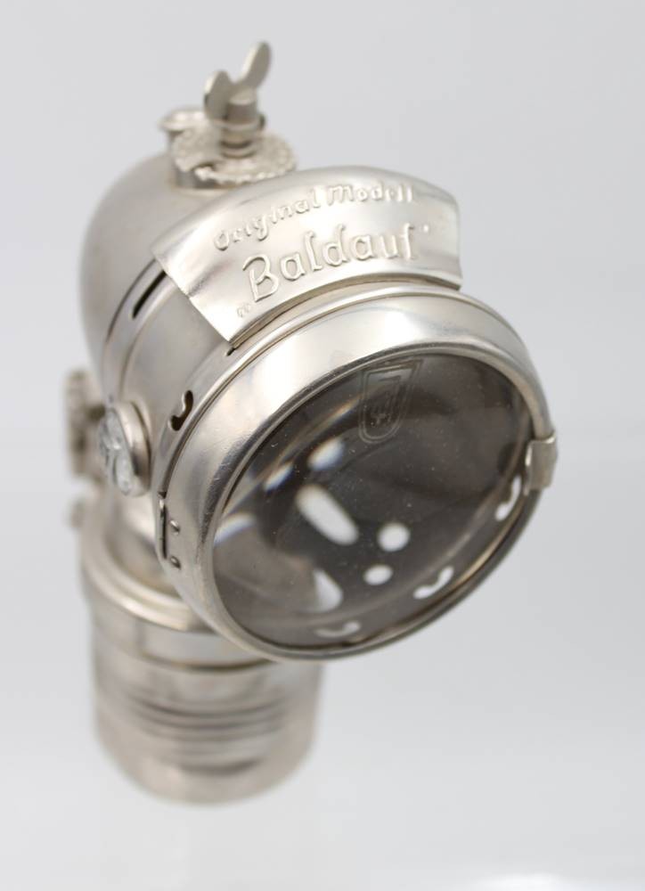 Karbid-Fahrradlampe, Baldauf, gute Erhaltung, ca. H-19cm [1]