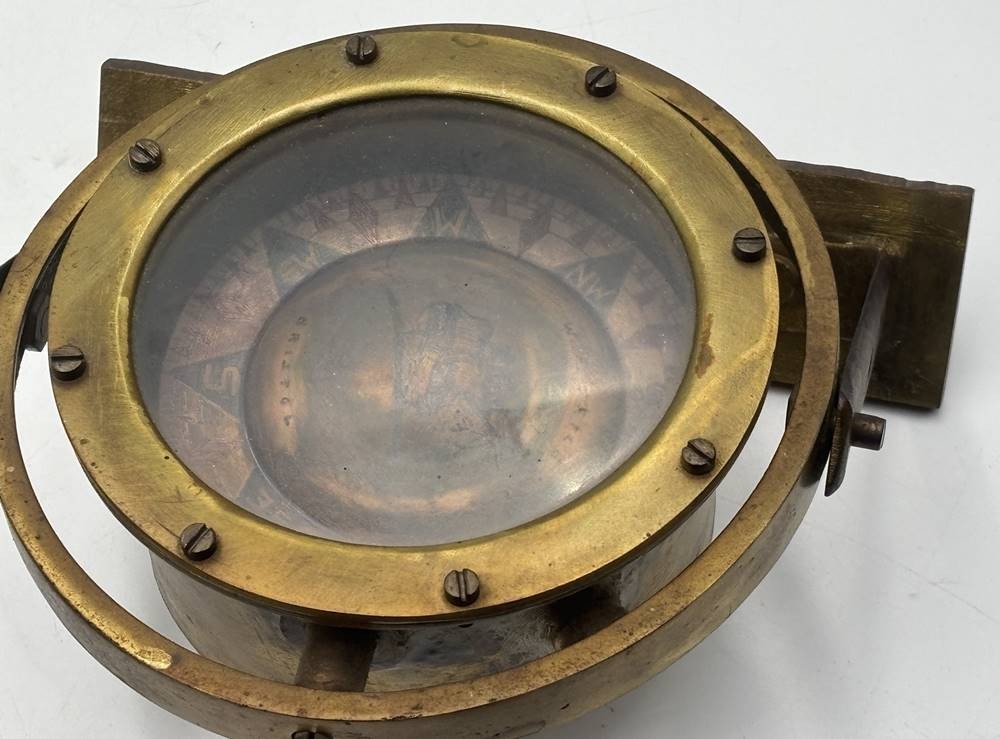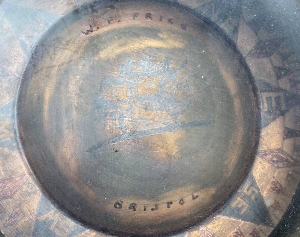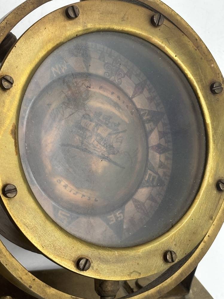 kardanisch aufgehängter Messing-Kompass, W.F.Frice, Bristol, D-13 cm, B-Halter 18 cm [1]