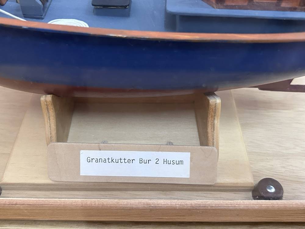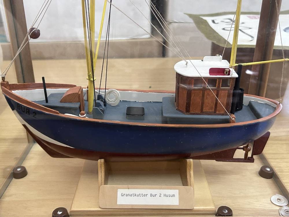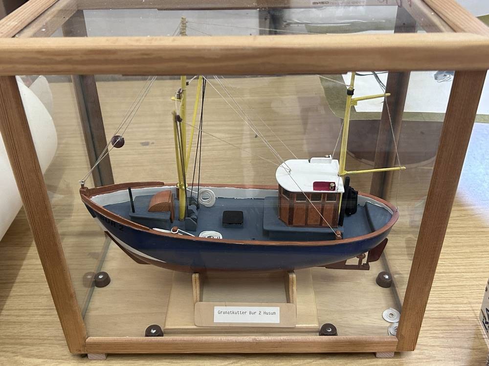Kl. Modellvitrine mit Husumer Granat-Kutter, 29x32x16 cm [1]