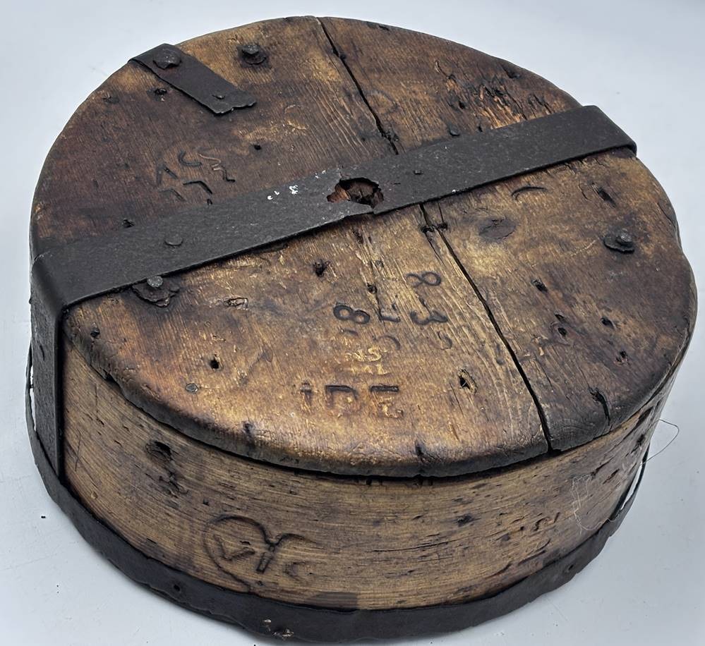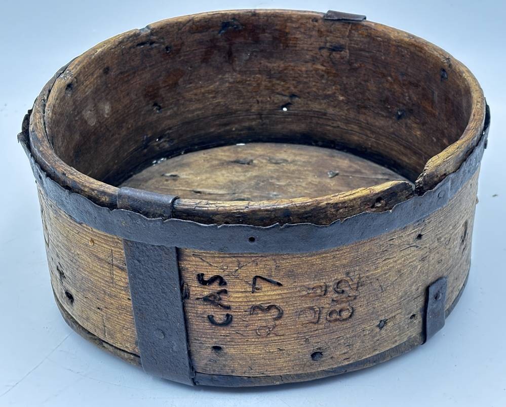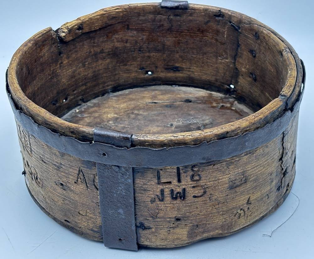 Korn-Himpten (Getreidemass), Holz/Eisen, div. Eichmarken,älteste wohl 1812, H-1 cm, D-27 cm [1]