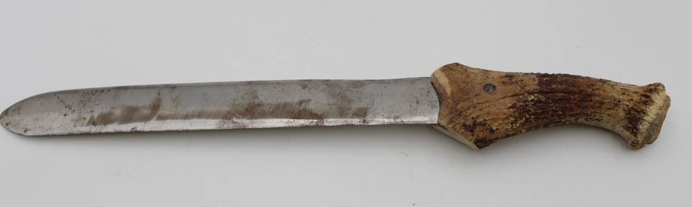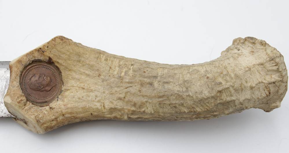 Machete o.ä., Geweihgriff dieser mit Kupfermedaillon, älter, L-ca. 58cm. [1]