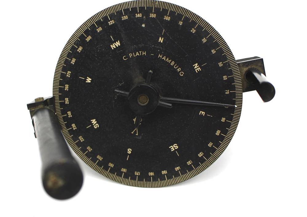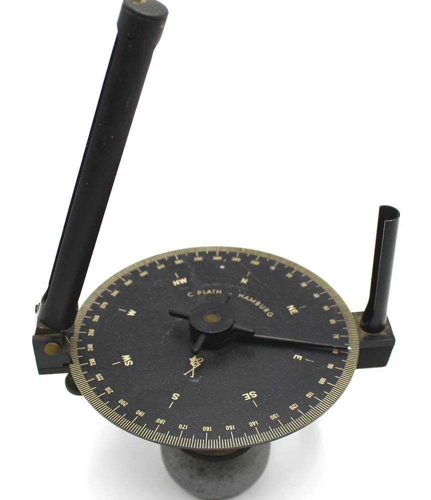 massive, schwerer Peilaufsatz "C.Plath-Hamburg", H-max. 35 cm, D-Scheibe 17 cm, mit Eisen-Gegengewicht [1]