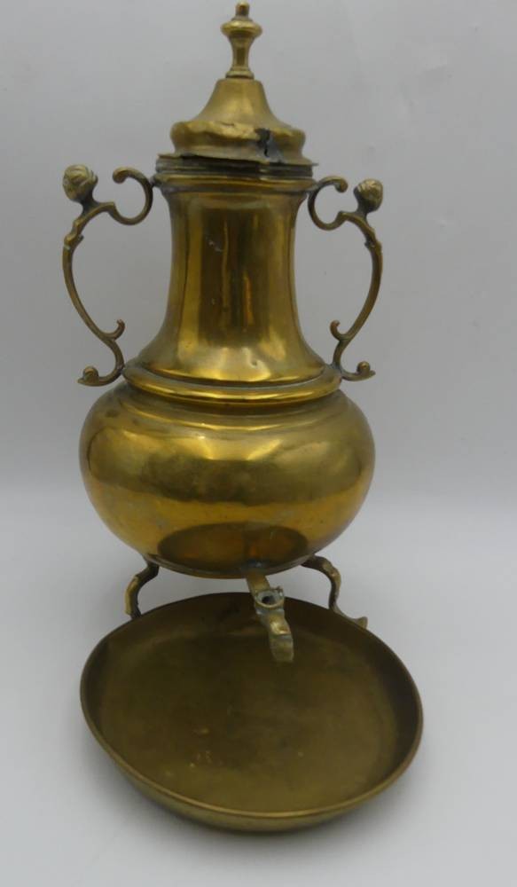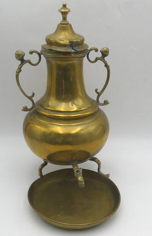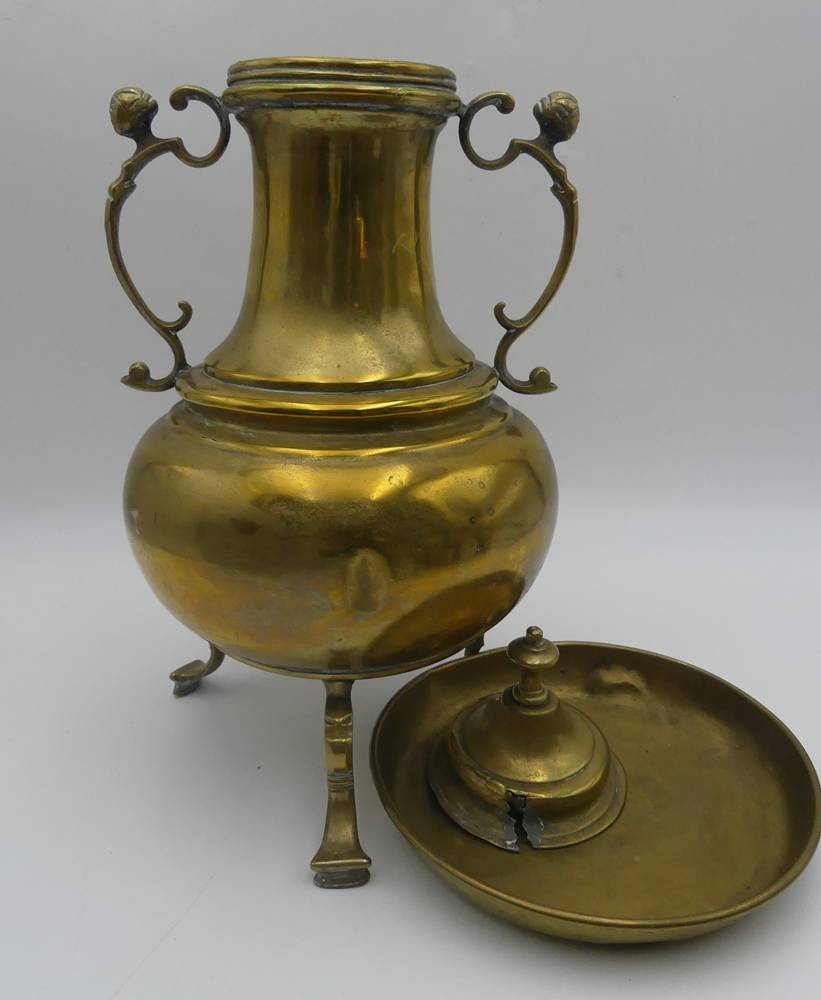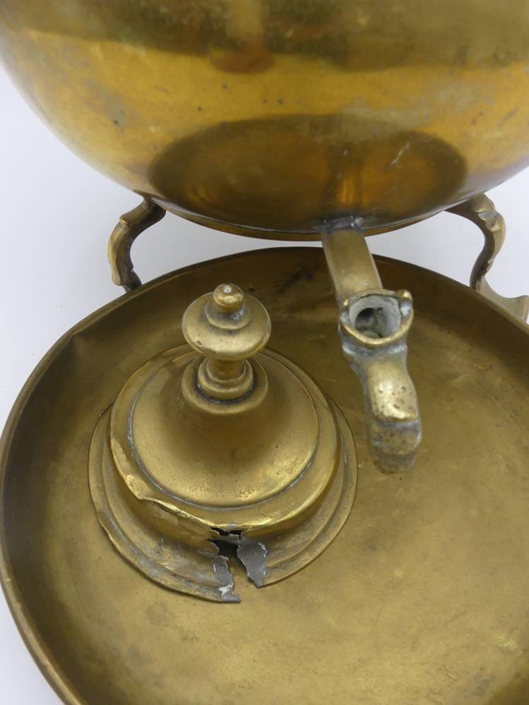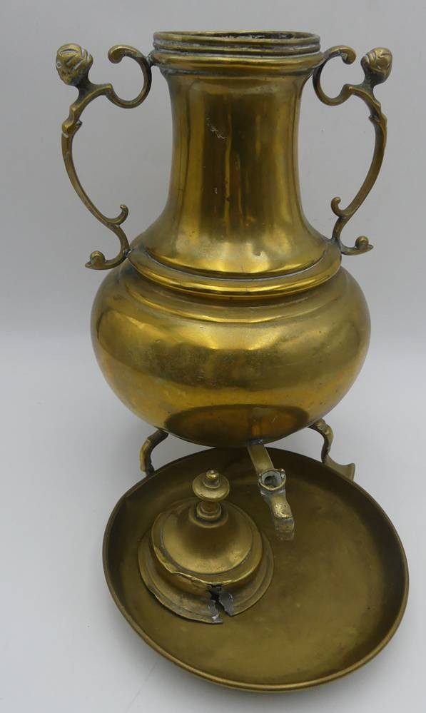 Messing Samowar mit Abtropfschale, Hahn fehlt, Deckel beschädigt, Delle [1]