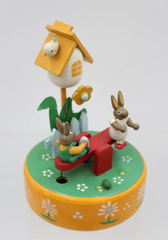 Osterspieldose, Häschen auf Wippe, Werk läuft, ca. H-15,5cm [1]