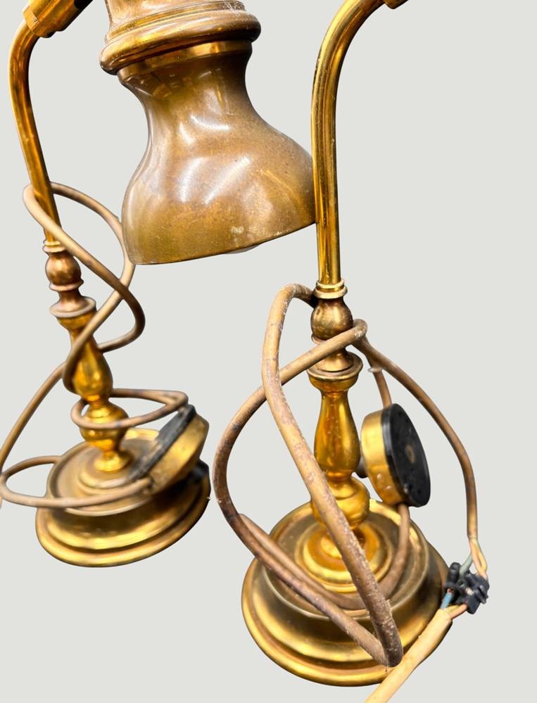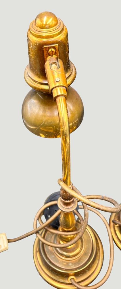 Paar Tischlampen, Bronze/Messing, alte Stoffschnur, H-ca.38 cm [1]
