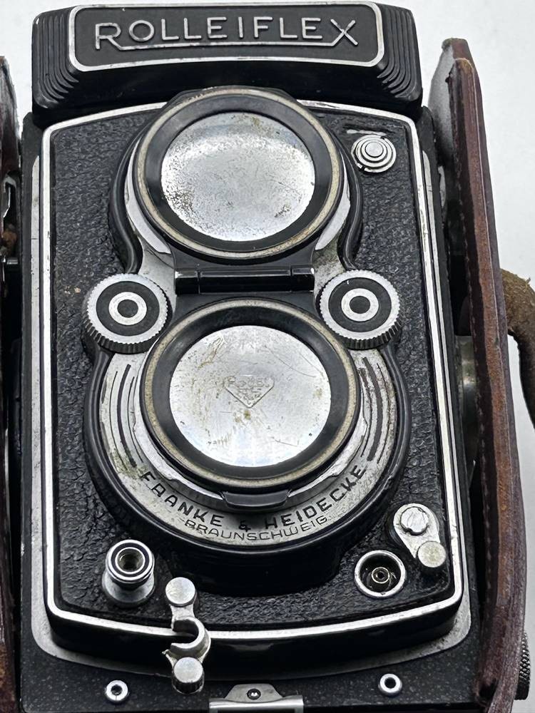 Rolleiflex Fotoapparat in Ledertasche, Objekltiv "Zeiss Opton Tessar 1:3,5