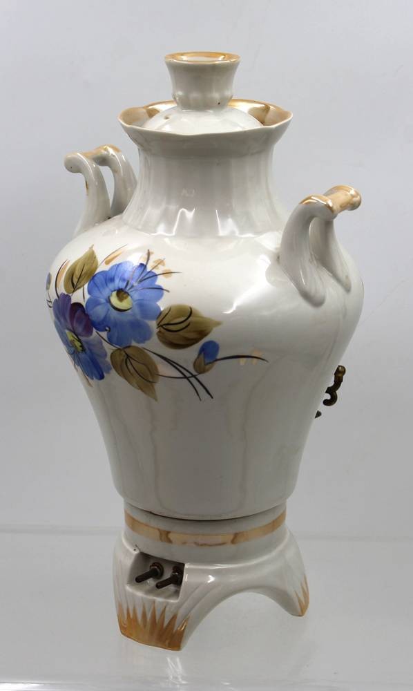Samowar aus Keramik mit floralem Muster, Russland, Kabel fehlt, Funktion nicht geprüft, ca. H-32cm [1]