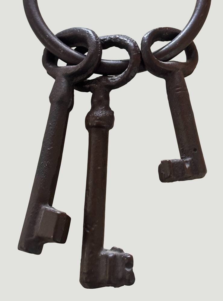 Schmiedeeiserner Ring mit 3 alten Schlüsseln
