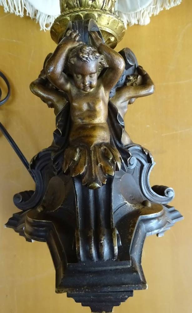 schwere Bronze Tischlampe, getragen von 3 Putti, H-48 cm [1]