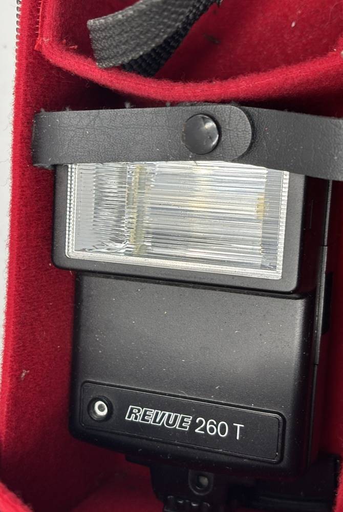 Spiegelreflex Revue AC 3s mit Blitzlicht in Tasche