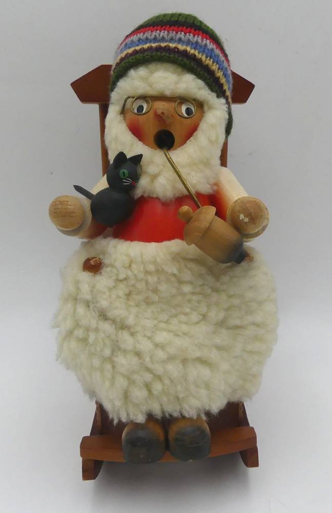 Spieluhr "Räuchermännchen Opa im Schaukelstuhl" Werk läuft, H-23 cm [1]