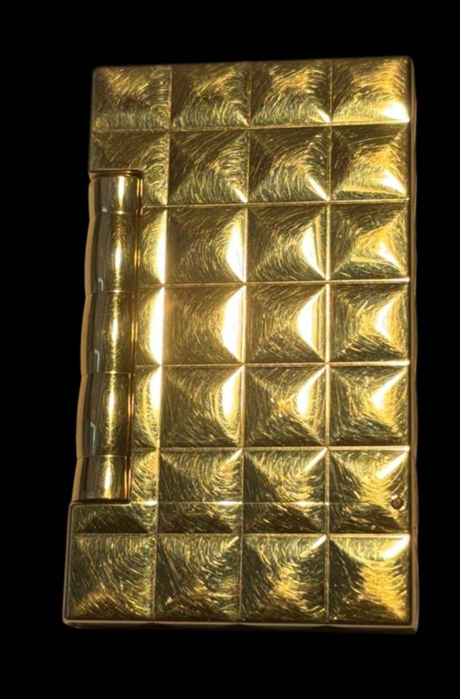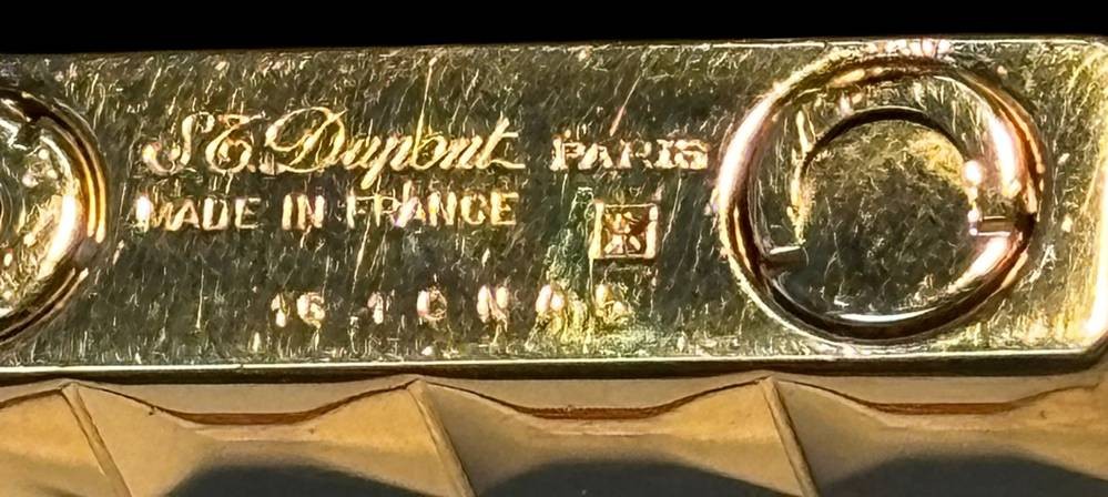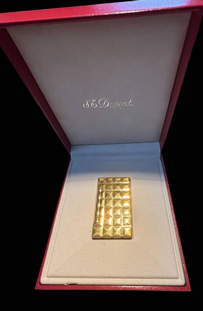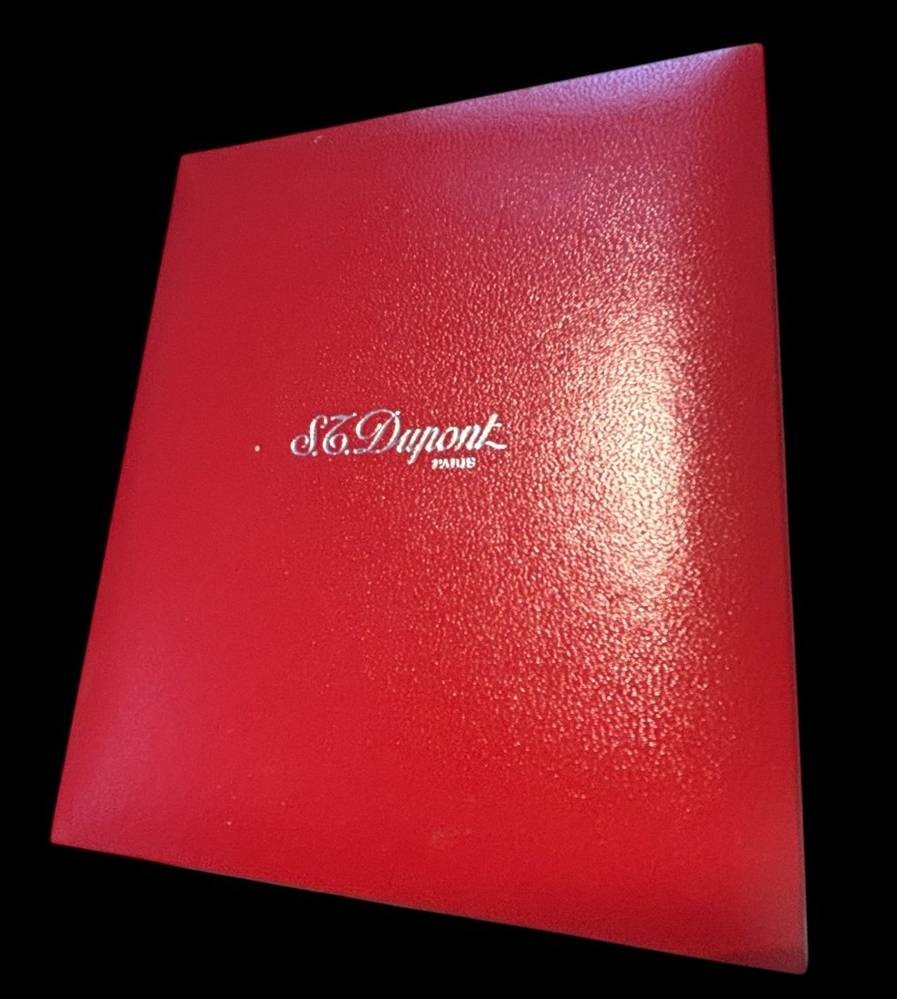 ST Dupont Paris - Vergoldetes Feuerzeug Ligne 2 in orig. Kasten, mit Tasche und Papiere. Es ist bekannt für sein unverwechselbares "Kling"-Geräusch beim Öffnen des Deckels. [1]