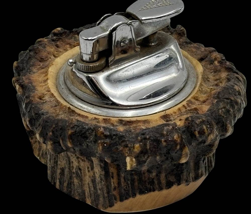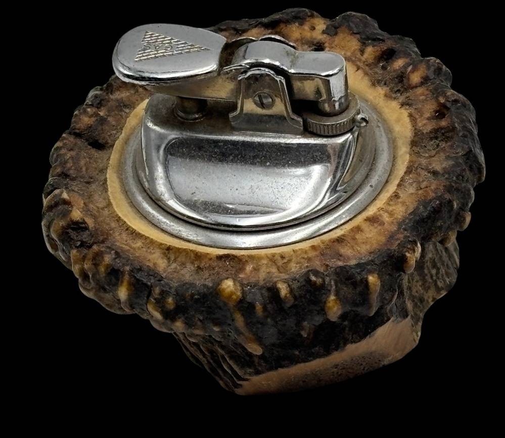 Tischfeuerzeug, Gas, in Hirschhorn-Gehäuse, H-6 cm, D-7 cm [1]
