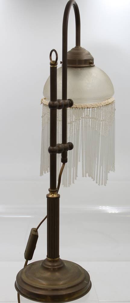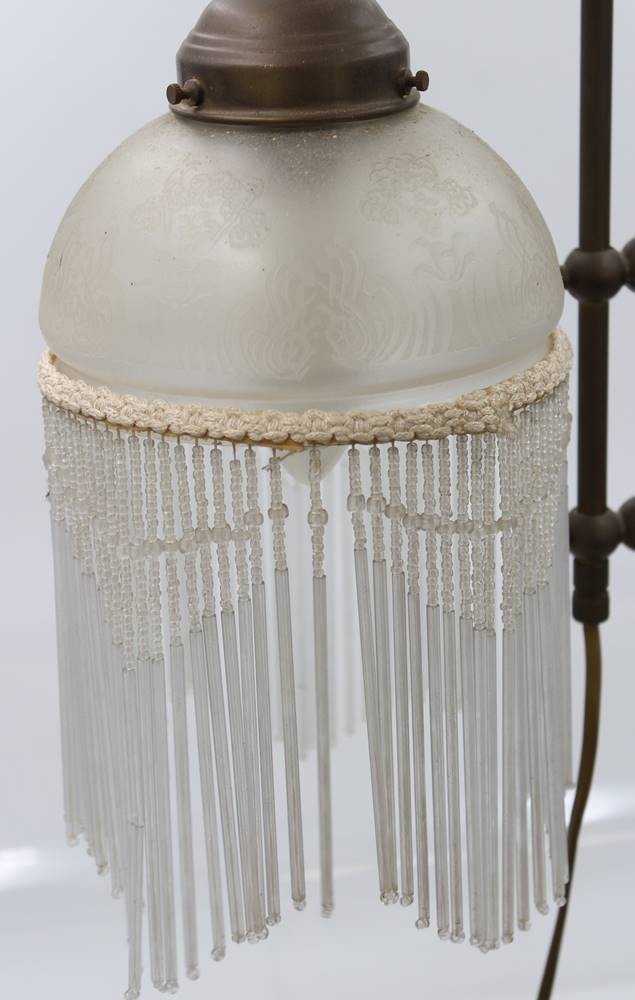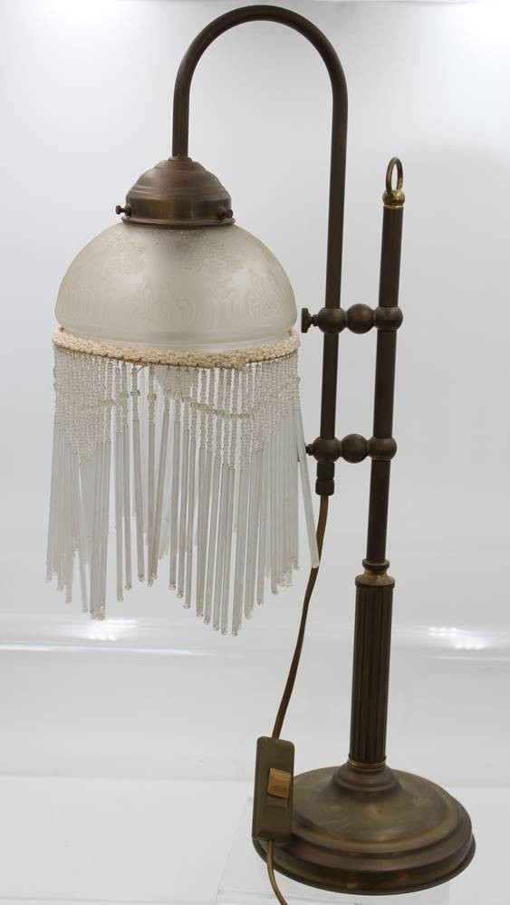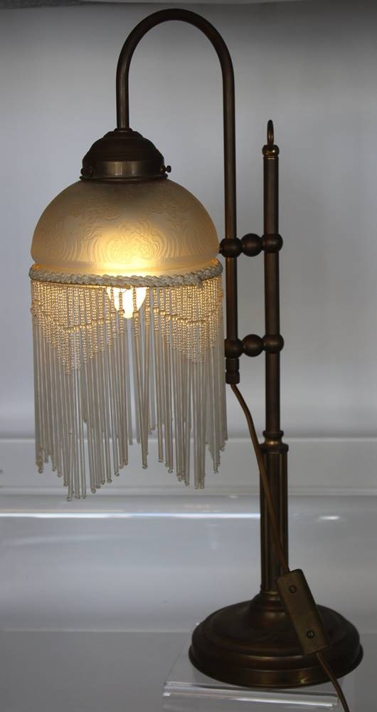 Tischlampe in antikem Stil, Glasschirm mit Fransenbehang,, ca. H-56cm [1]