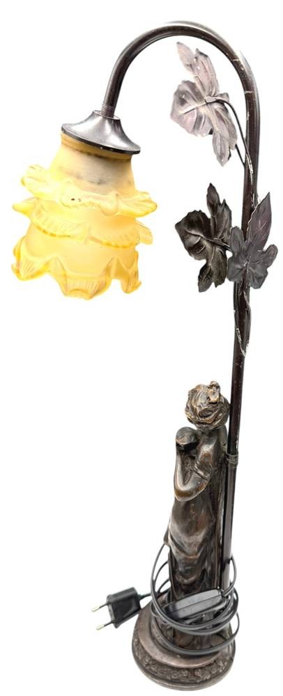 Tischlampe mit figürlichen Stand, Metall bronziert, 20.Jhd., H- 53 cm [1]