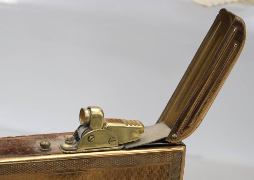 Trio. Zigarettenetui mit Feuerzeug, 50 Jahre, orig. Karton,. Gebrauchsspuren, ca. 7,5 x 13,5cm