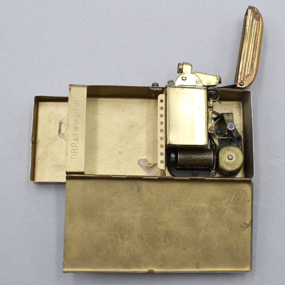 Trio. Zigarettenetui mit Feuerzeug, 50 Jahre, orig. Karton,. Gebrauchsspuren, ca. 7,5 x 13,5cm [1]