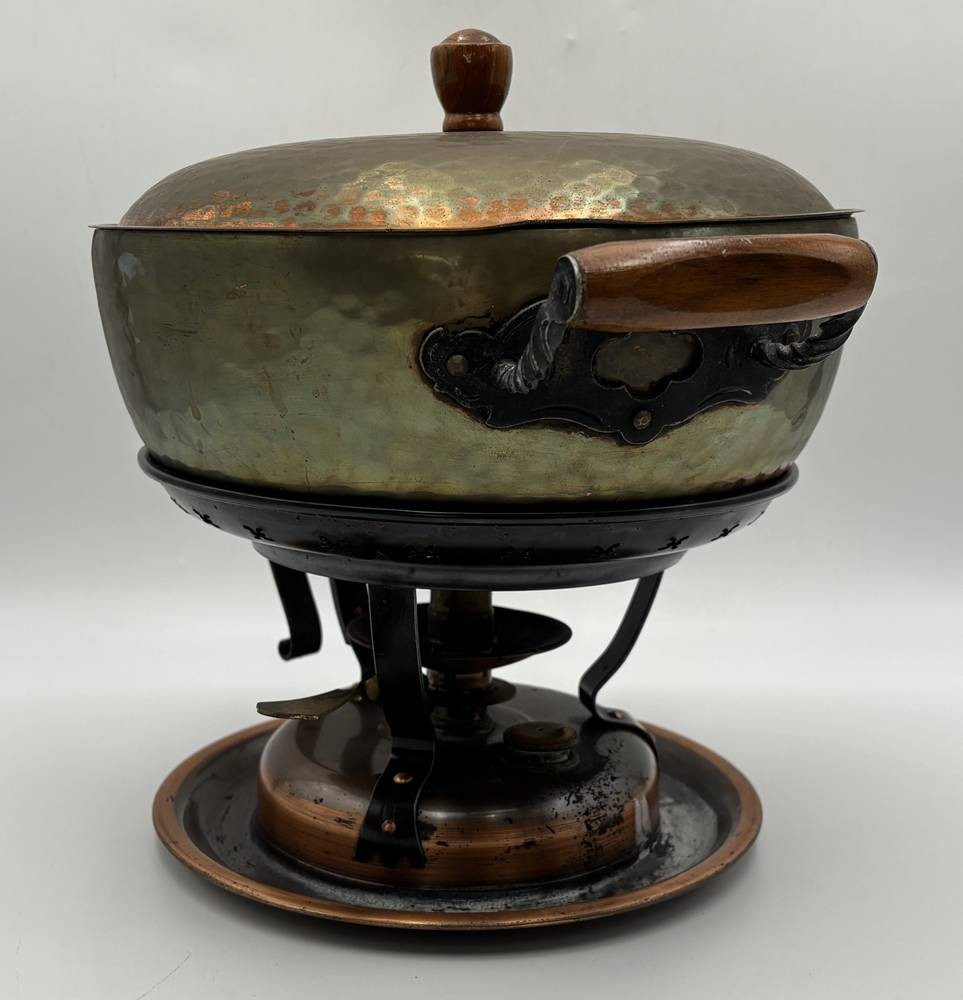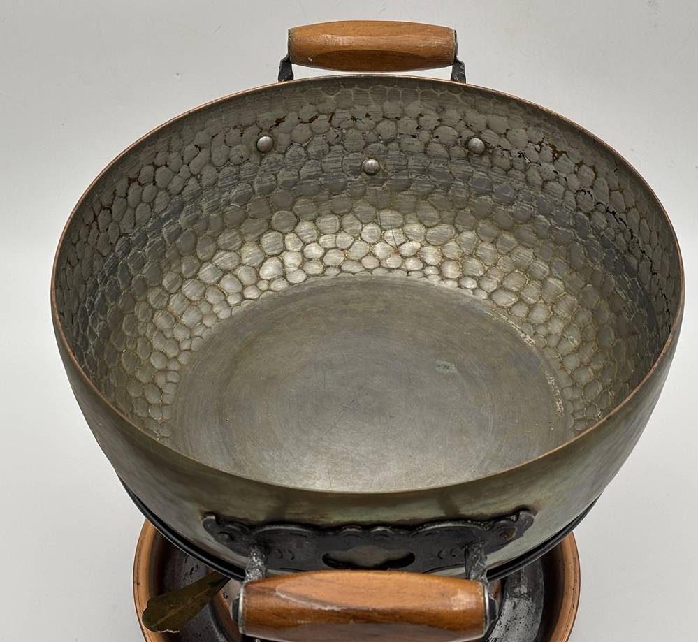 vintage Stöckli Fondue Set mit Kupfertopf - Swiss Made, 70-er Jahre, H-25 cm, B-34 cm [1]