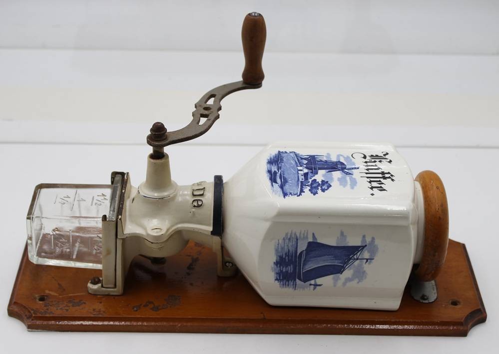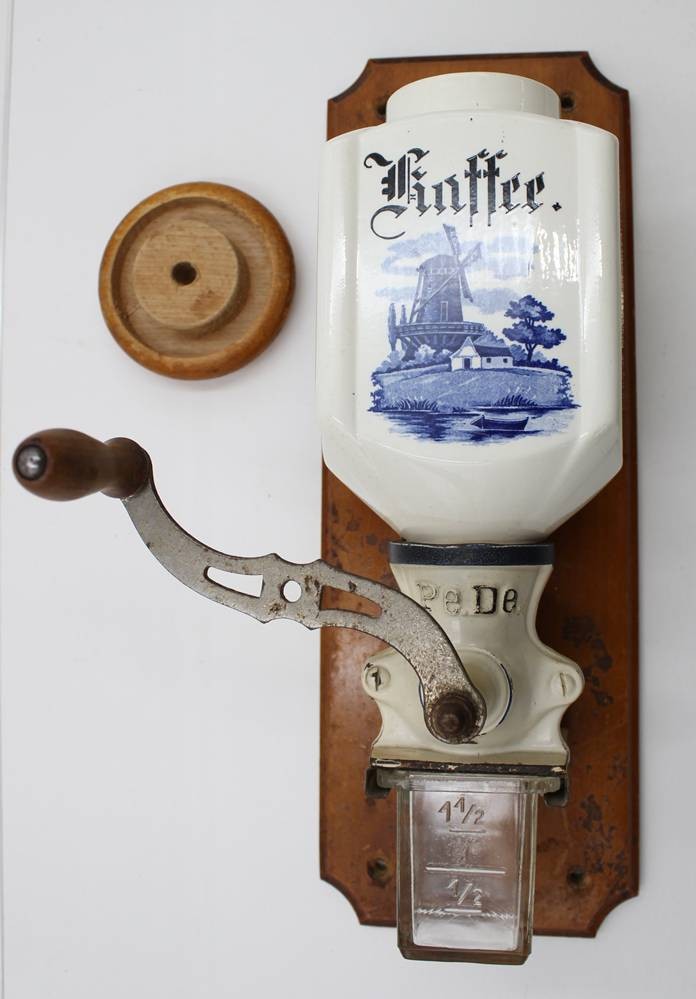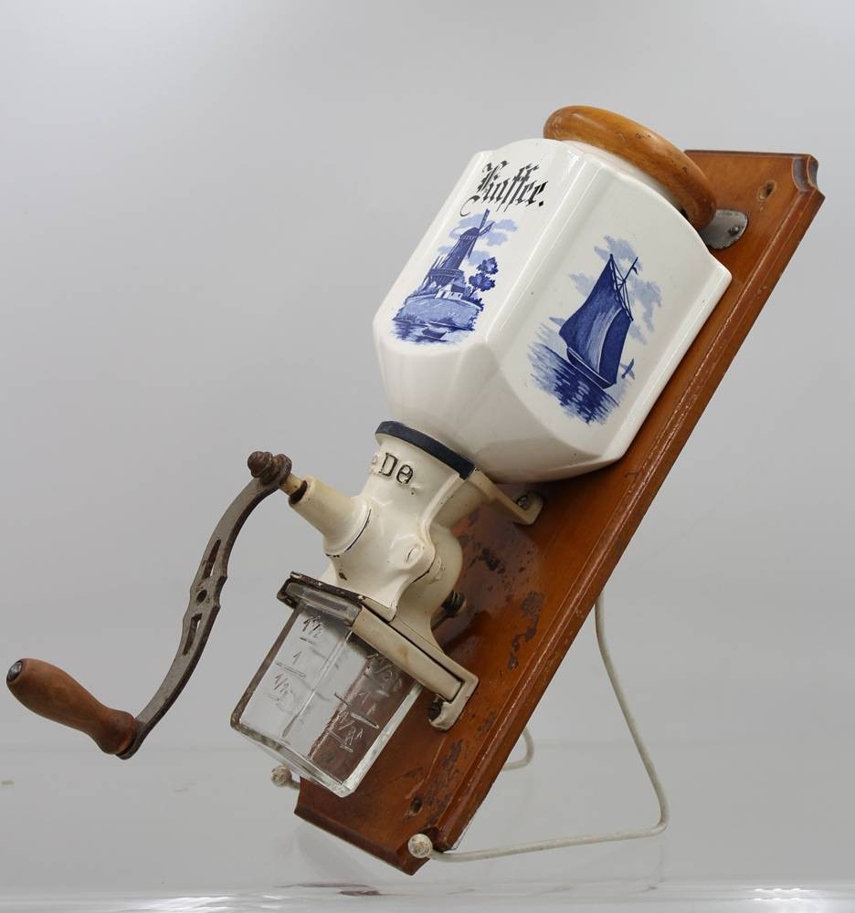 Wandkaffeemühle, älter, Mühlenmotive, ca. H-38cm B-13,5cm [1]