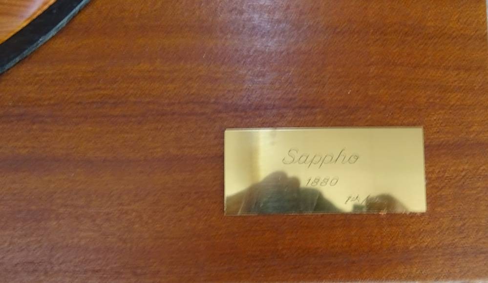Werft Halbmodell "Sappho" auf Holzbrett, H-22 cm, L-80 cm, Messingschild [1]