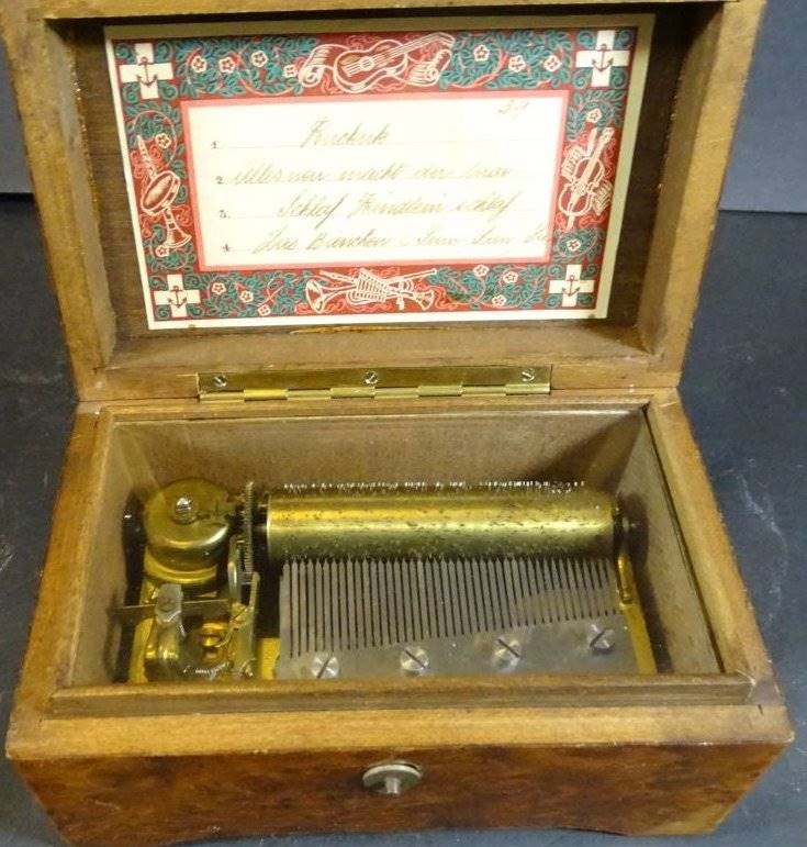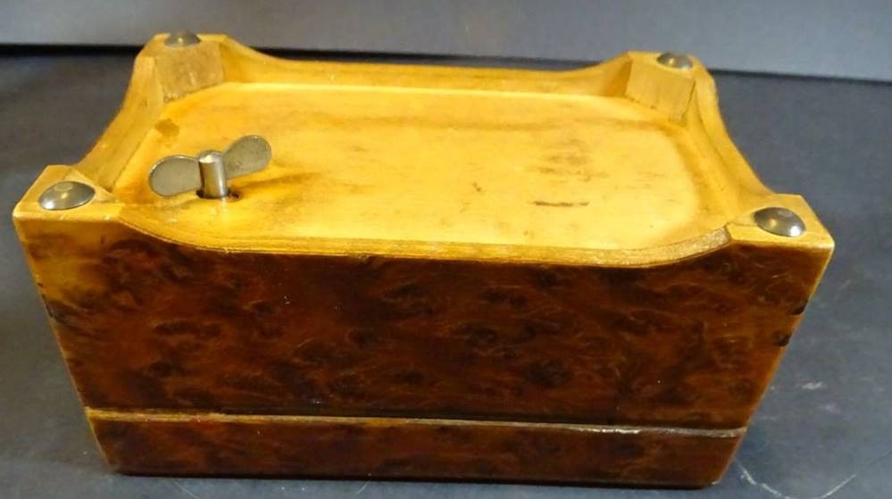 Wurzelholzkasten mit Spieluhr, 4 Melodien, läuft, H-7 cm, 14x9 cm [1]