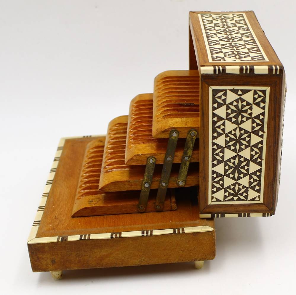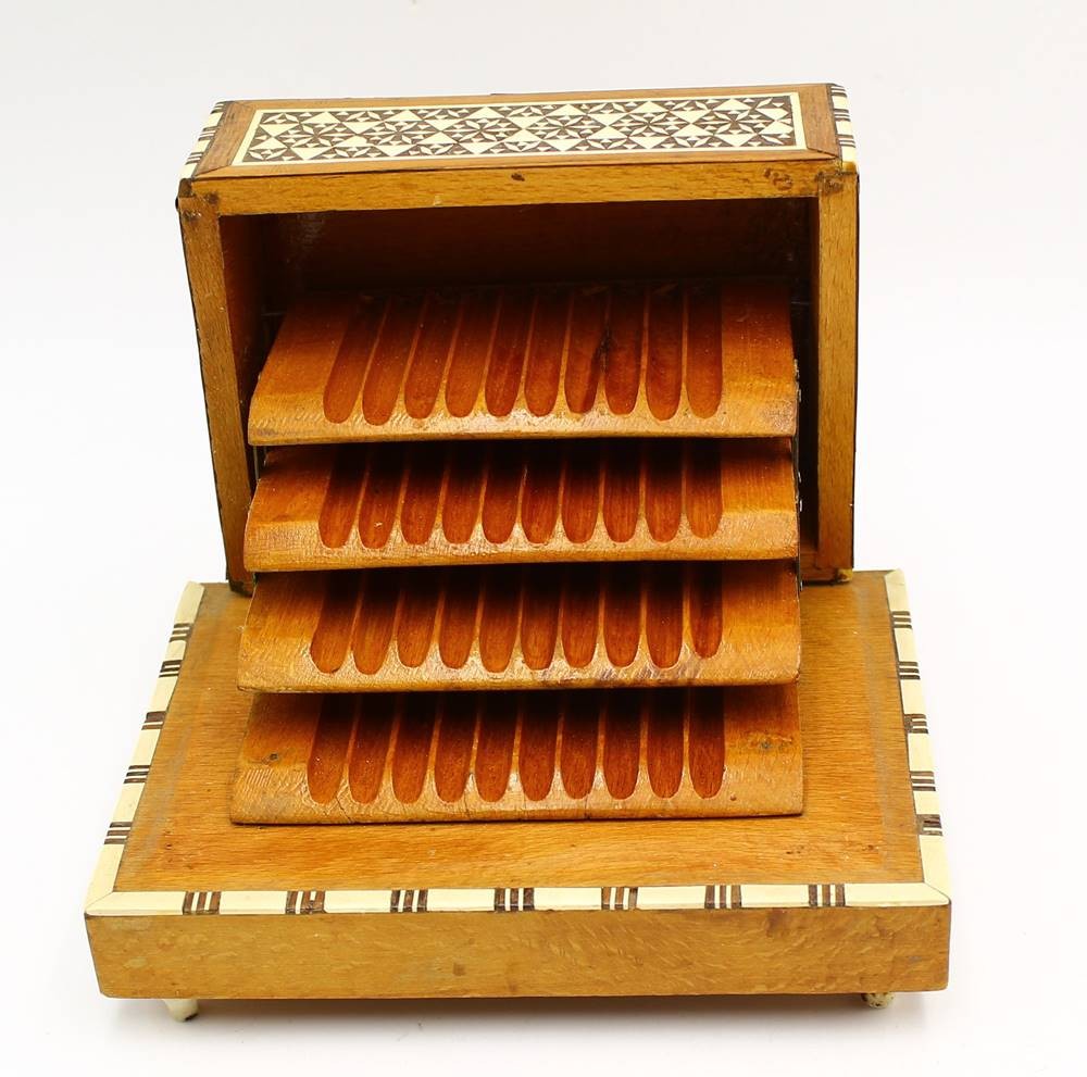 Zigarettendose, Holz mit Beineinlagen und Spieluhr, H-10 cm, 13x18 cm [1]