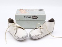 Babyschuhe aus Leder "Absorboot", Frankreich, mit Schachtel und Pflegehinweisen, L. 12,5 cm, mit leichten Tragespuren, leicht reinigungsbedürftig