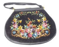 Handgestickte Gobelintasche mit Handspiegel und Nähutensilien , 18x25cm