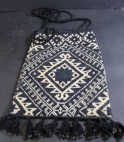 gewebter Stoffbeutel, gefüttert und mit Troddeln, 25x23 cm