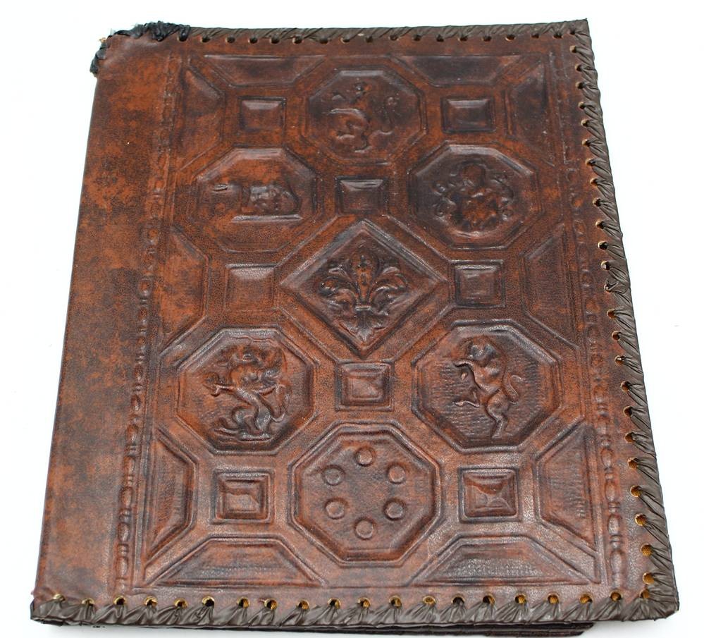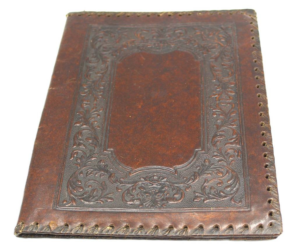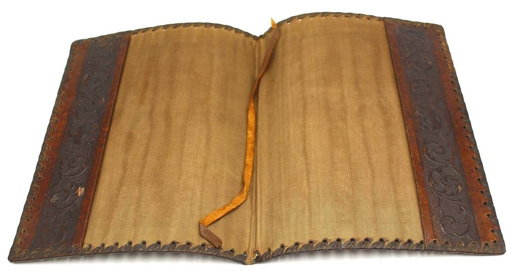 2x kl. Leder-Mappen, geprägt, DIN A4, Gebrauchsspuren [1]