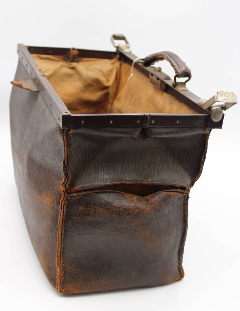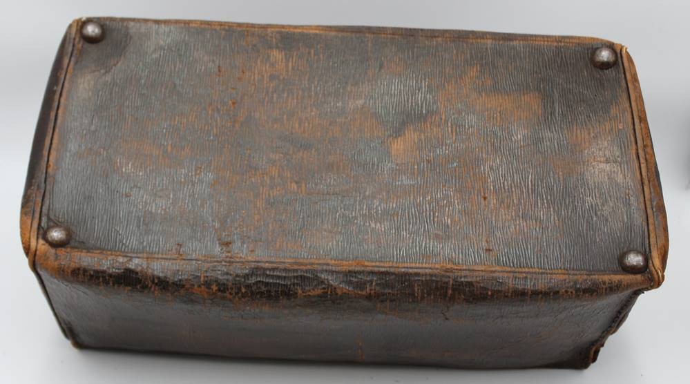 Arzttasche um 1900, Leder, Alters-u. Gebrauchsspuren, ca. H-21cm B-47cm. [1]