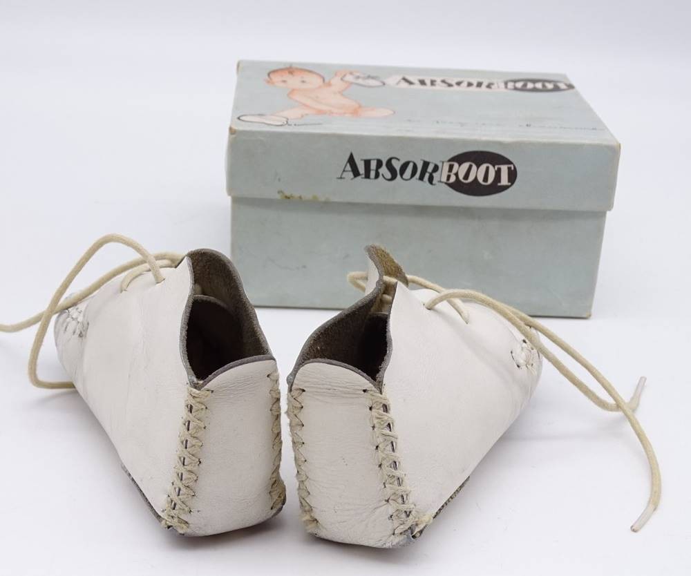 Babyschuhe aus Leder "Absorboot", Frankreich, mit Schachtel und Pflegehinweisen, L. 12,5 cm, mit leichten Tragespuren, leicht reinigungsbedürftig [1]
