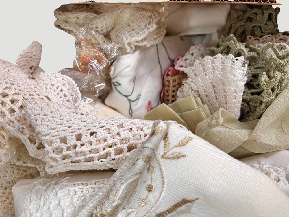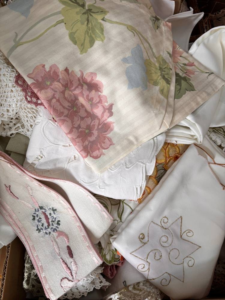 Bananenkarton voll Tischwäsche, anbei ca. 35 diverse Stoffservietten [1]