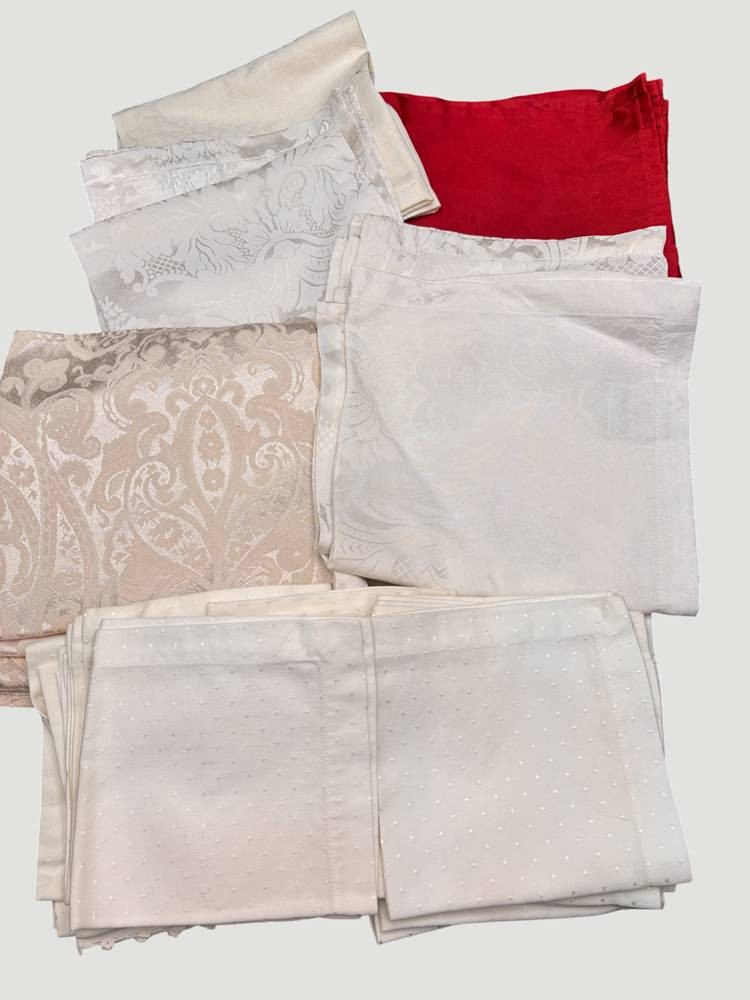 Bananenkarton voll Tischwäsche, anbei ca. 35 diverse Stoffservietten
