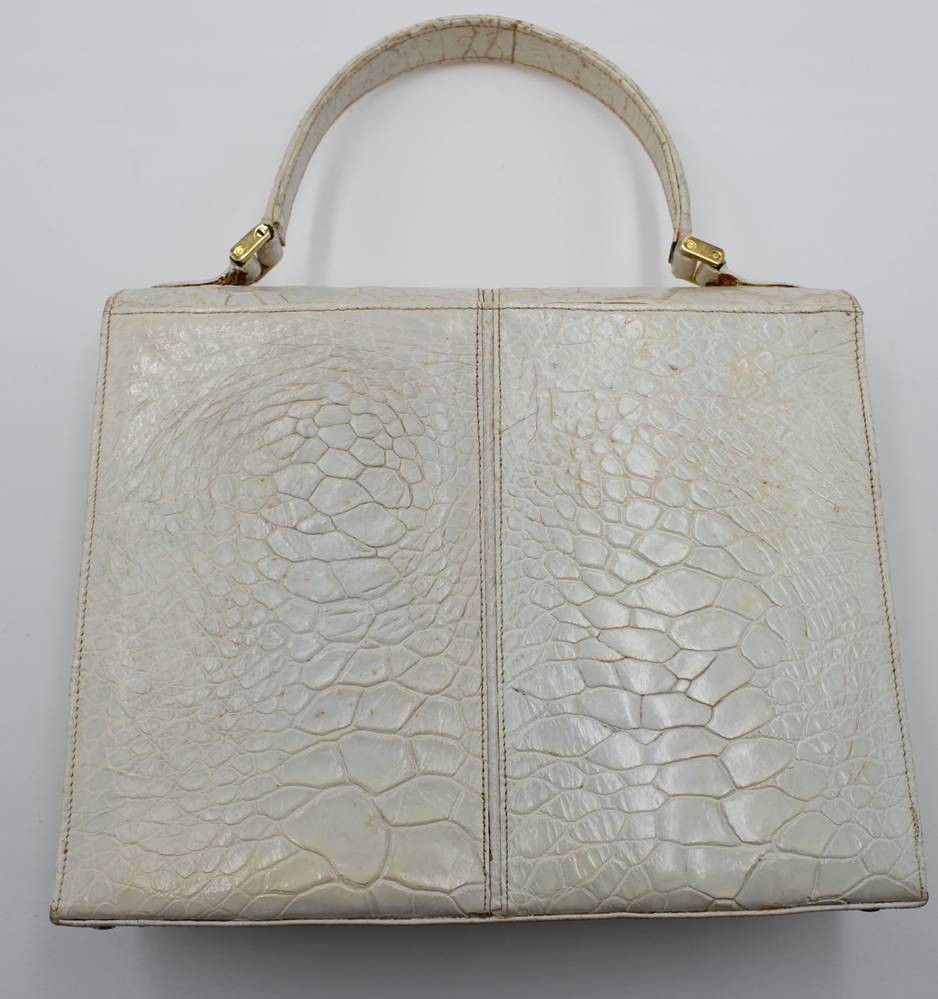 Damenhandtasche, weiss, Leder?, Tragespuren, 19x25 cm [1]