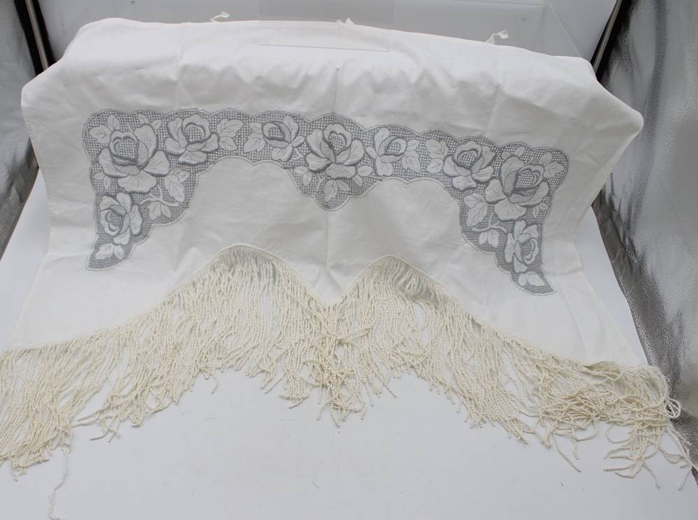 Gardine, älter, Rosenspitze, ca. 74 x 62cm