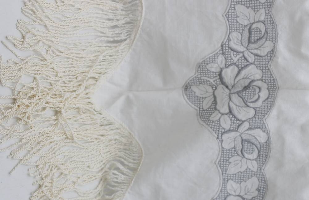 Gardine, älter, Rosenspitze, ca. 74 x 62cm [1]