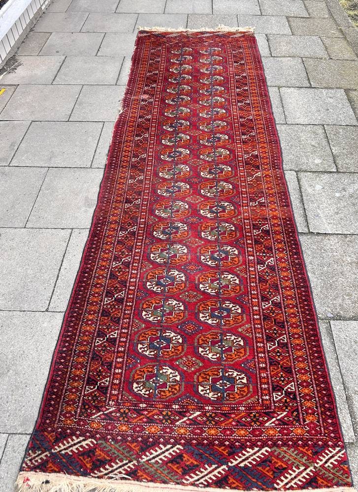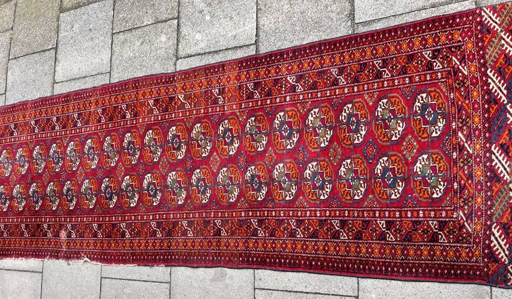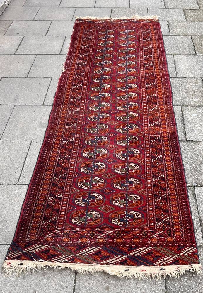 langer Orientläufer, älter, 260x76 cm, Ränder tw. beschädigt, Altersspuren [1]