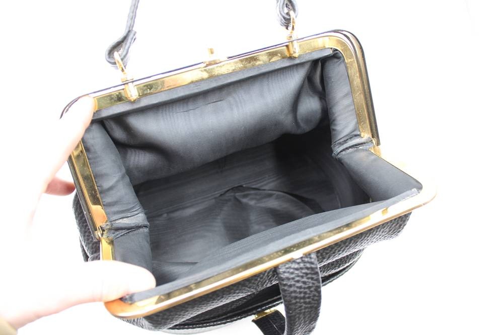 Leder-Handtasche, zweiteilig zum Abnehmen, innen Futter eingerissen, Leder, 23x28 unten [1]