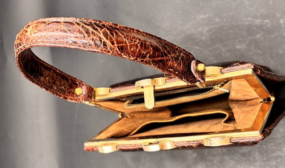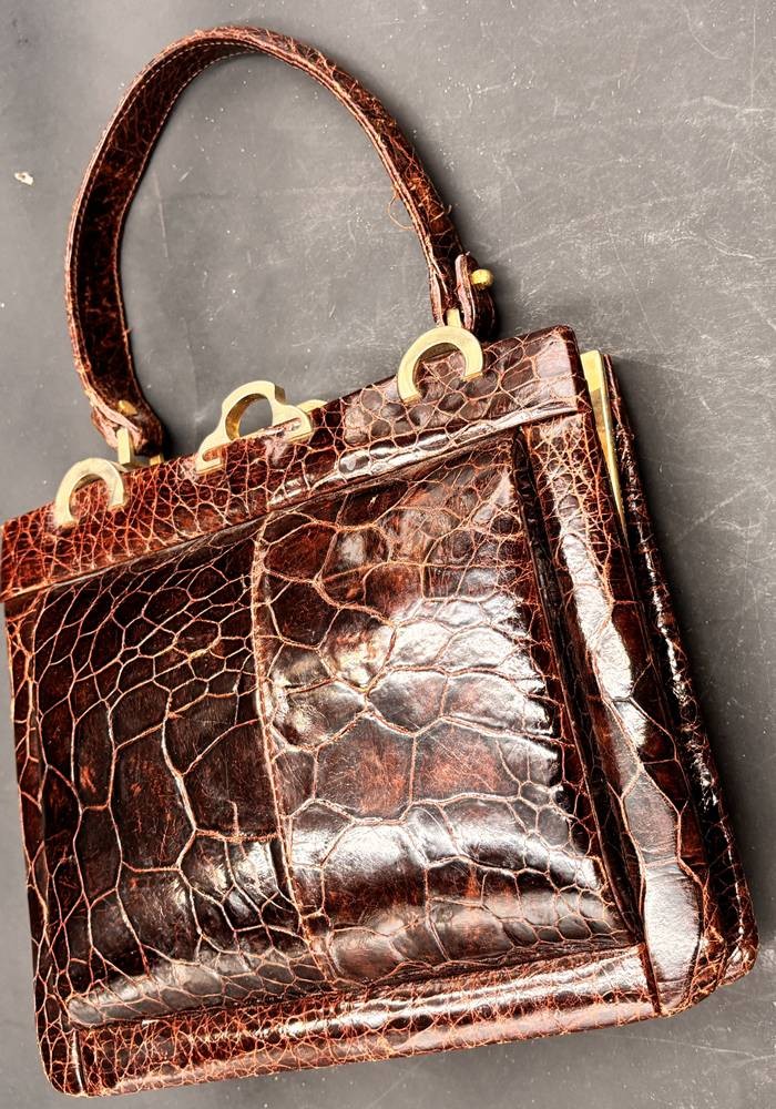 Reptilienleder-Handtasche, leichte Tragespuren, 19x22 cm [1]