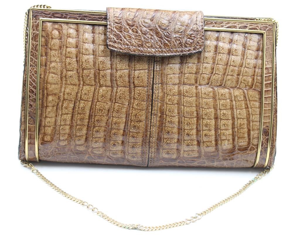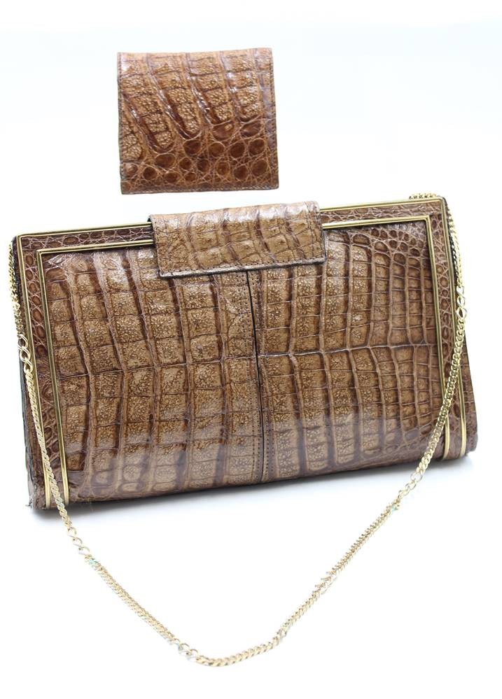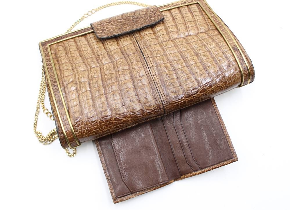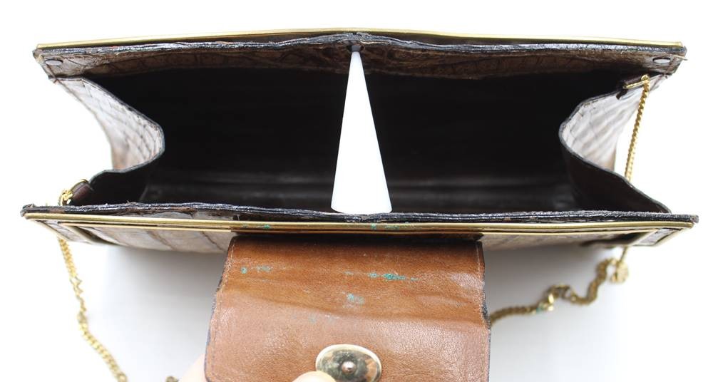 schöne Damenhandtasche, Krokoleder, wohl 50e/60er Jahre, Tragespuren, anbei Krokoleder-Geldbörse von Goldpfeil, ca. 16,5 x 27cm [1]