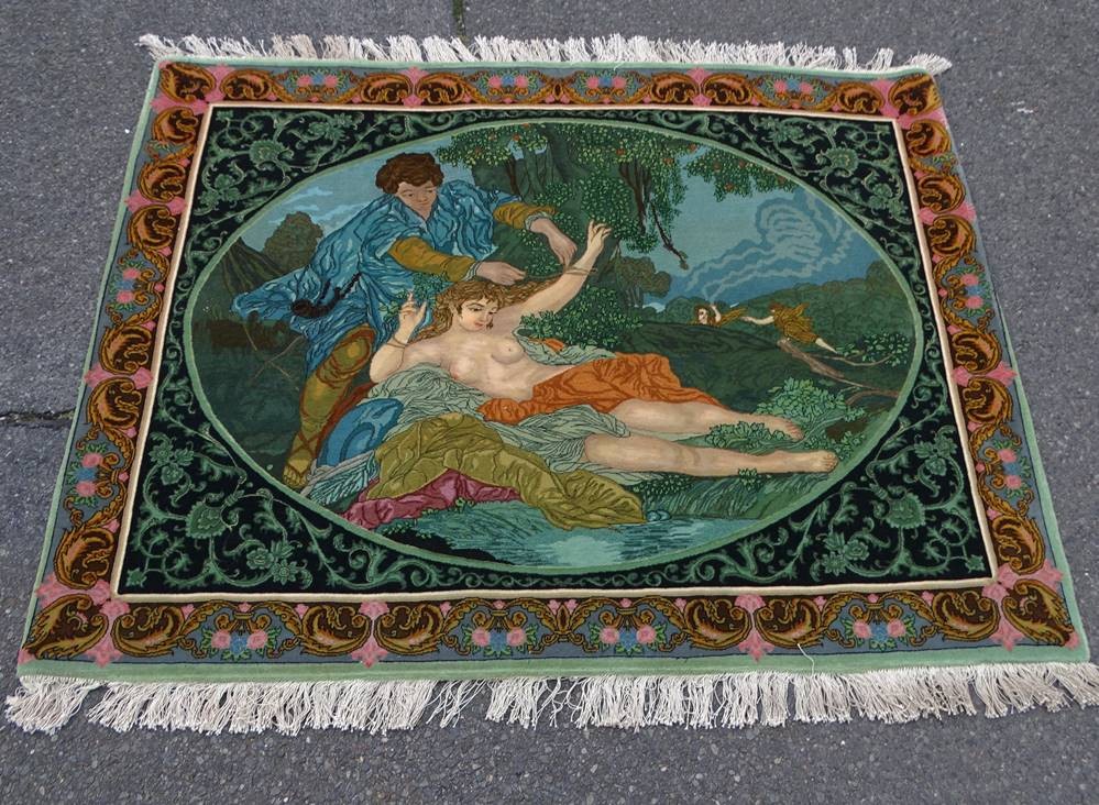 schöner Bilderteppich, antikisierend Szene, älter, guter Zustand, 110 x 127cm [1]