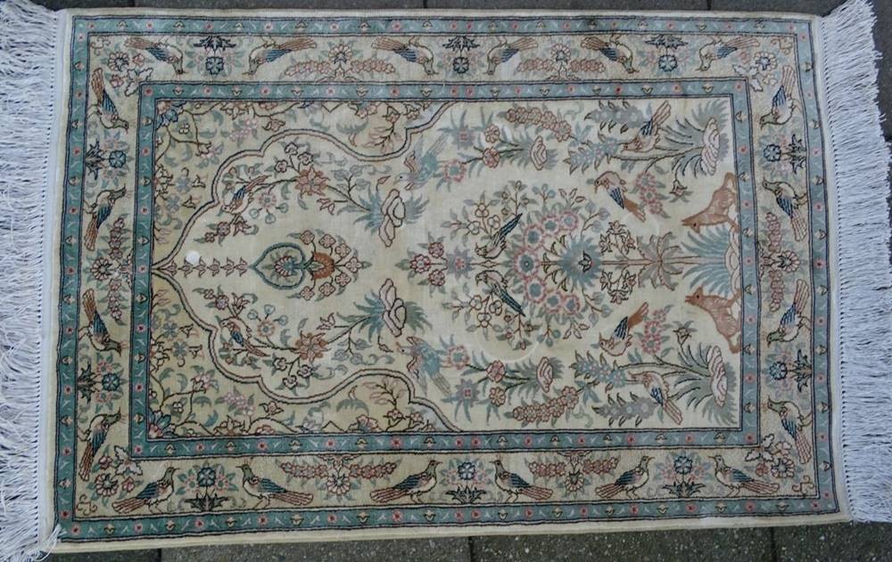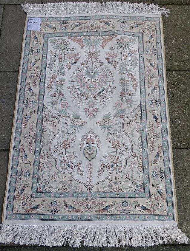 Seidenteppich, 92x63 cm, eine kl. Druckstelle, ansonsten gut erhalten, wohl Ghom? [1]